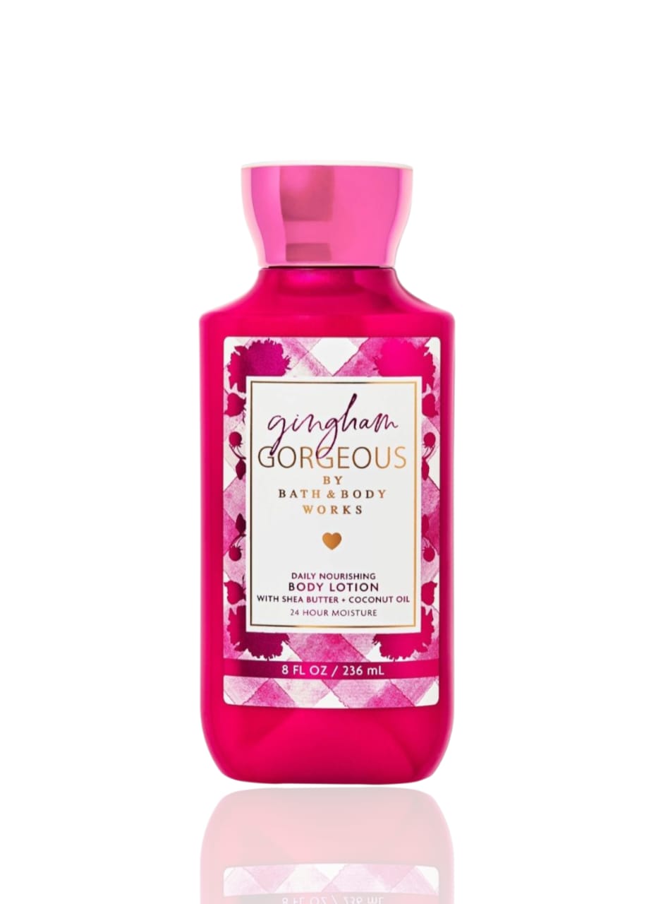 Indulge your skin with Gingham Gorgeous Body Lotion, a luxurious moisturizer designed to hydrate and nourish. This lightweight formula swiftly absorbs into the skin, leaving it feeling soft and supple without any greasy residue. Infused with a fresh and uplifting fragrance, this lotion provides a delightful sensory experience while promoting a healthy glow.